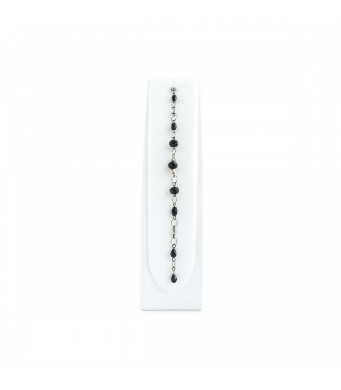 Tento elegantní náramek je ketlovaný z černých a stříbrných broušených korálků.